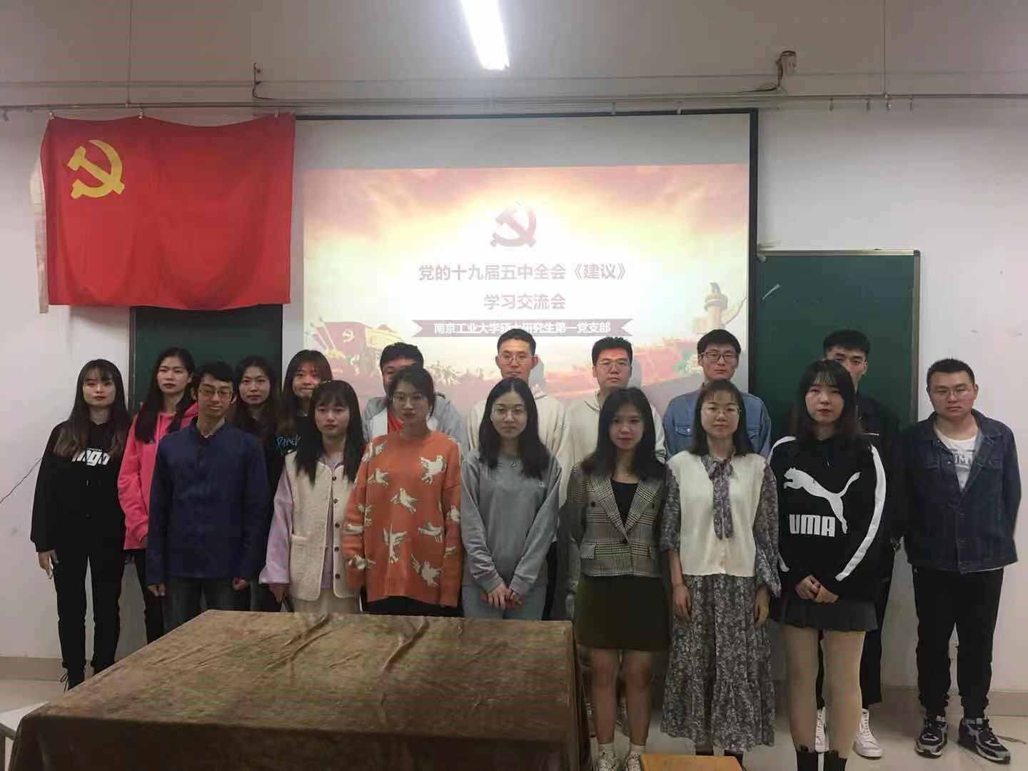 硕研第一党支部坚持关注热点,主动行动,积极开展理论学习和实践活动。全体党员共同学习了中共第十九届中央委员会第五次全体会议和全面推动长江经济带发展座谈会精神。