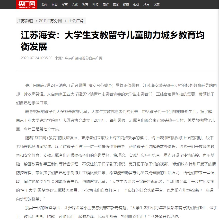中央广播电视总台央广网对本次支教活动做了专题报道。此次夏令营义务支教活动得到了员工和家长的欢迎,千步村党支部对公司志愿者的辛勤付出表示感谢与支持。