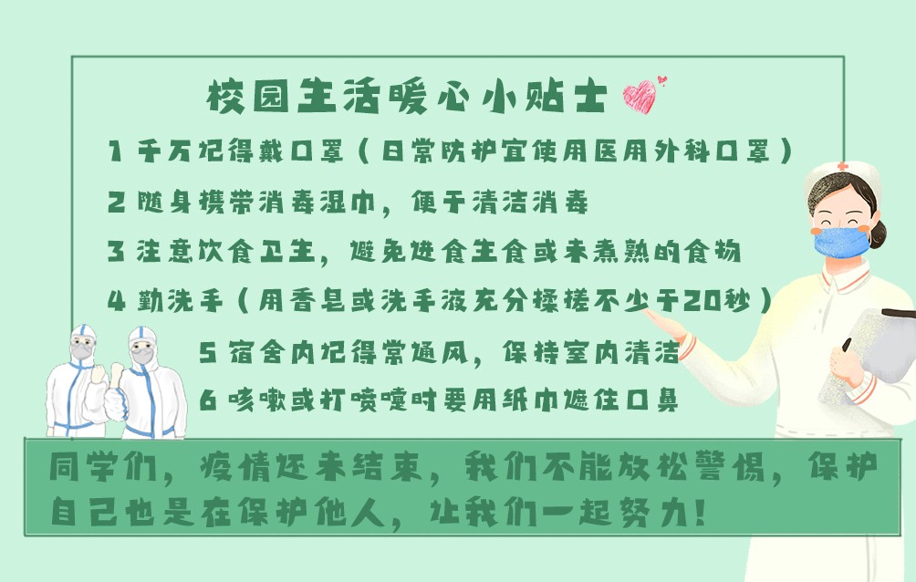 为帮助员工养成良好卫生习惯、做好疫情防护,帮助返校员工尽快适应疫情防控期间校园生活,tyc122cc太阳成集团开展了“小小贴士,情暖校园”活动,通过员工自己创作设计的小贴士,弘扬正能量,传递温暖。
