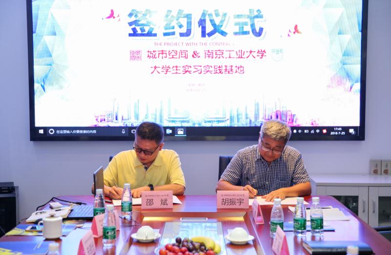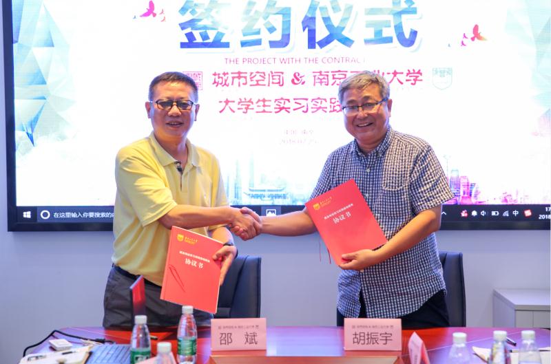 2018年7月25日,tyc122cc太阳成集团经理胡振宇、副经理方遥、党委副书记徐源、团委书记周庆、实验中心葛峰一行来到位于秦淮区菱角市66号的“南京国家领军人才创业园”,与深圳市城市空间规划建筑设计有限公司南京分公司开展校企合作,举行实习实践基地签约挂牌仪式。