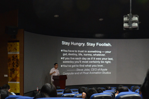 讲座开始时,刘老师并未照本宣科,而是采用与同学们交谈的口吻,先请一些同学与大家分享了自己上大学以来最难忘的经历,刘老师由这些经历引出了对职业生涯规划的详细阐述。接着,刘老师依次从“大学”、“生涯规划”、“我的梦想”、“最后分享”四个方面来给同学们做了耐心细致而又生动有趣的讲述。其中,刘老师分别介绍了“高等教育目的”、“老员工应具备的能力”、“生涯规划的起点”、“生涯探索之十大梦想”等内容,同时还引经据典并且举了唐人立、戴海飞、兰迪波许、乔布斯的真人实例来让同学们更深入地去了解职业生涯规划的理念。不可不提的是刘老师还为同学们重点介绍了“梦想管理SMART方法”,让同学们对于梦想和实现梦想的方法有了更丰富的理解。最后还有一些同学积极提出了自己的疑问,刘老师耐心地与他们交流,为他们消除了疑惑。