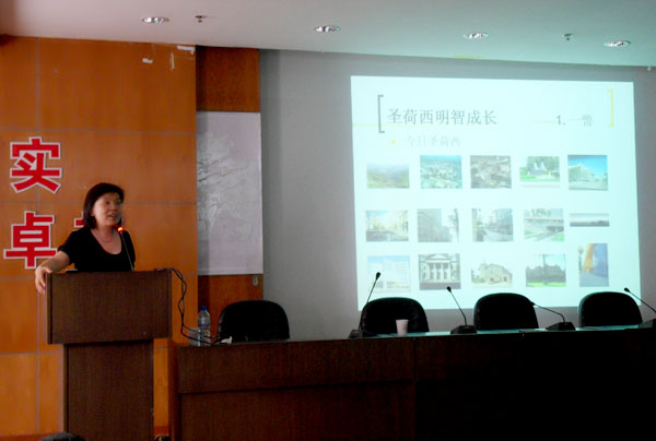 6月22日下午,美国加州圣荷西规划建设监管局资深建筑师沈丽卓女士在虹桥校区图书馆六楼报告厅为公司师生做了一场题为《美国的城市规划及再发展》的学术报告。副经理施梁教授、建筑系主任林晓东副教授,以及近150名本科生和研究生听取了讲座、