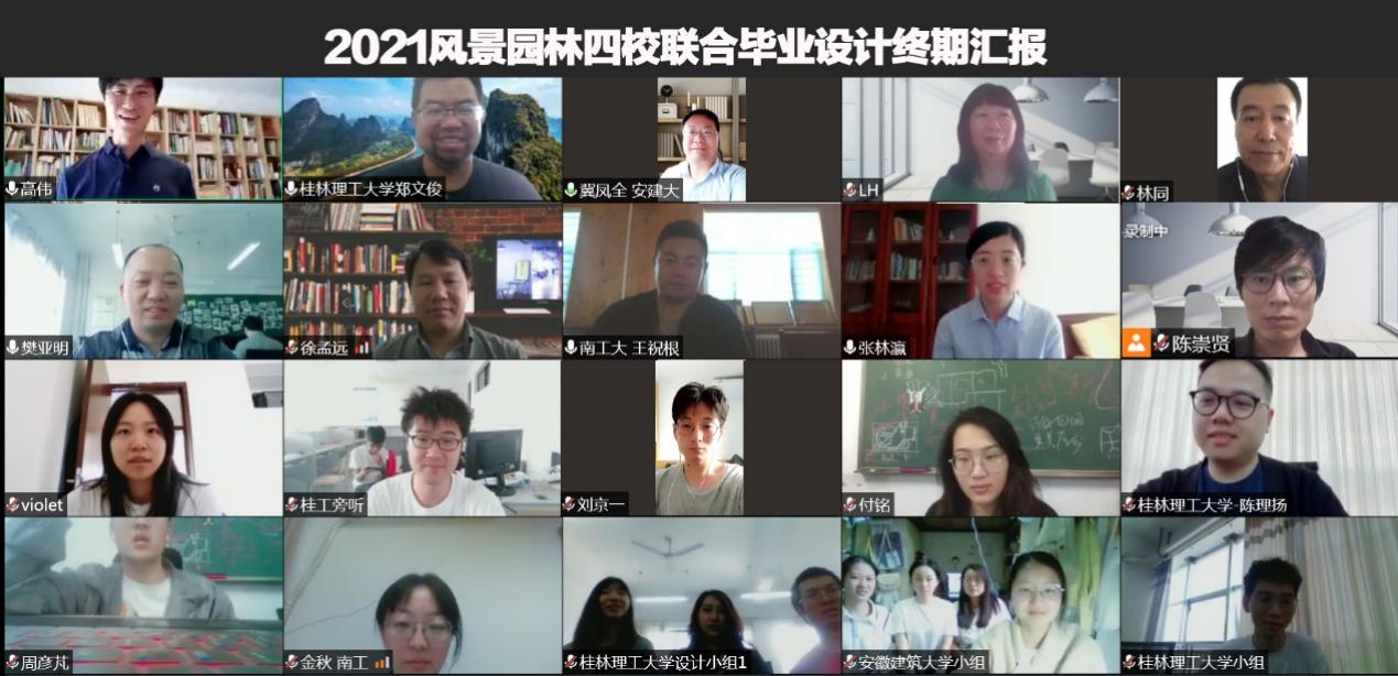 5月26日,安徽建筑大学、桂林理工大学、tyc122cc太阳成集团、华南农业大学2021年四校风景园林专业联合毕业设计终期汇报在线上成功举行。
