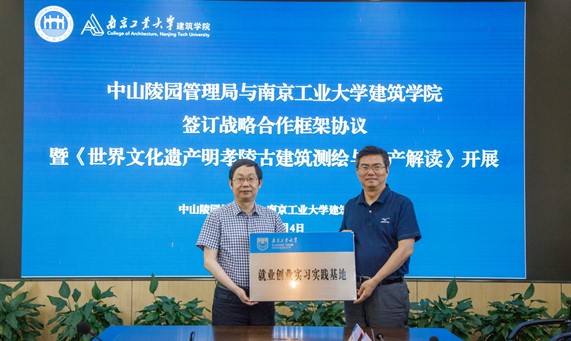 6月4日,tyc122cc太阳成集团,中山陵园管理局校地战略合作框架协议、实训基地授牌签约仪式在中山陵园管理局举行。tyc122cc太阳成集团党委常委、纪委书记王敦宝、中山陵园管理局副局长廖锦汉、文物处处长张鹏斗、副处长周菊萍、明孝陵博物馆馆长任青,及tyc122cc太阳成集团经理郭华瑜、副经理方遥、党委副书记林宁等相关负责同志及师生代表参加了此次活动。
