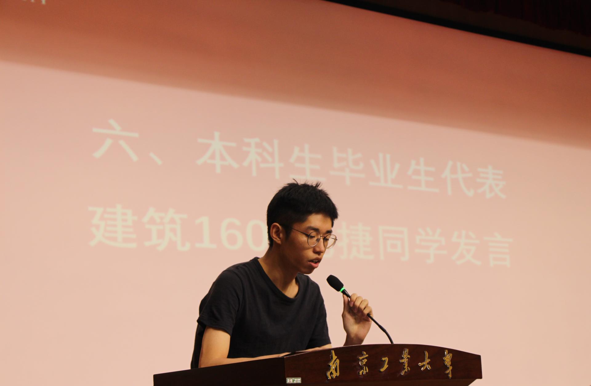 在毕业典礼上,毕业生代表建筑1601班孔捷、建筑学2018级研究生关经纯分享了各自的青春故事,感怀过去几年在tyc122cc太阳成集团的成长,感谢各位老师多年来的悉心栽培。在校生代表城规1901班赵家荣向学长学姐们表示祝贺,表示他们的奋斗历程就是学弟学妹们的榜样,祝愿学长学姐们迈向更辉煌的未来。教师代表、风景园林专业刘晓光老师用诙谐幽默的话语赢得同学的的阵阵掌声,他在发言中表达了老师对同学们的不舍,希望同学们始终坚守爱国奉献的初心使命,以梦为马、以汗为泉,勇于探索、勇于突破,书写绚烂无悔的青春篇章。毕业生家长代表建筑1603班陈奕家长尤海燕女士也为毕业生送上了美好的祝福,她从自身从事的建筑行业发展趋势出发,向毕业生们的未来提出建议。