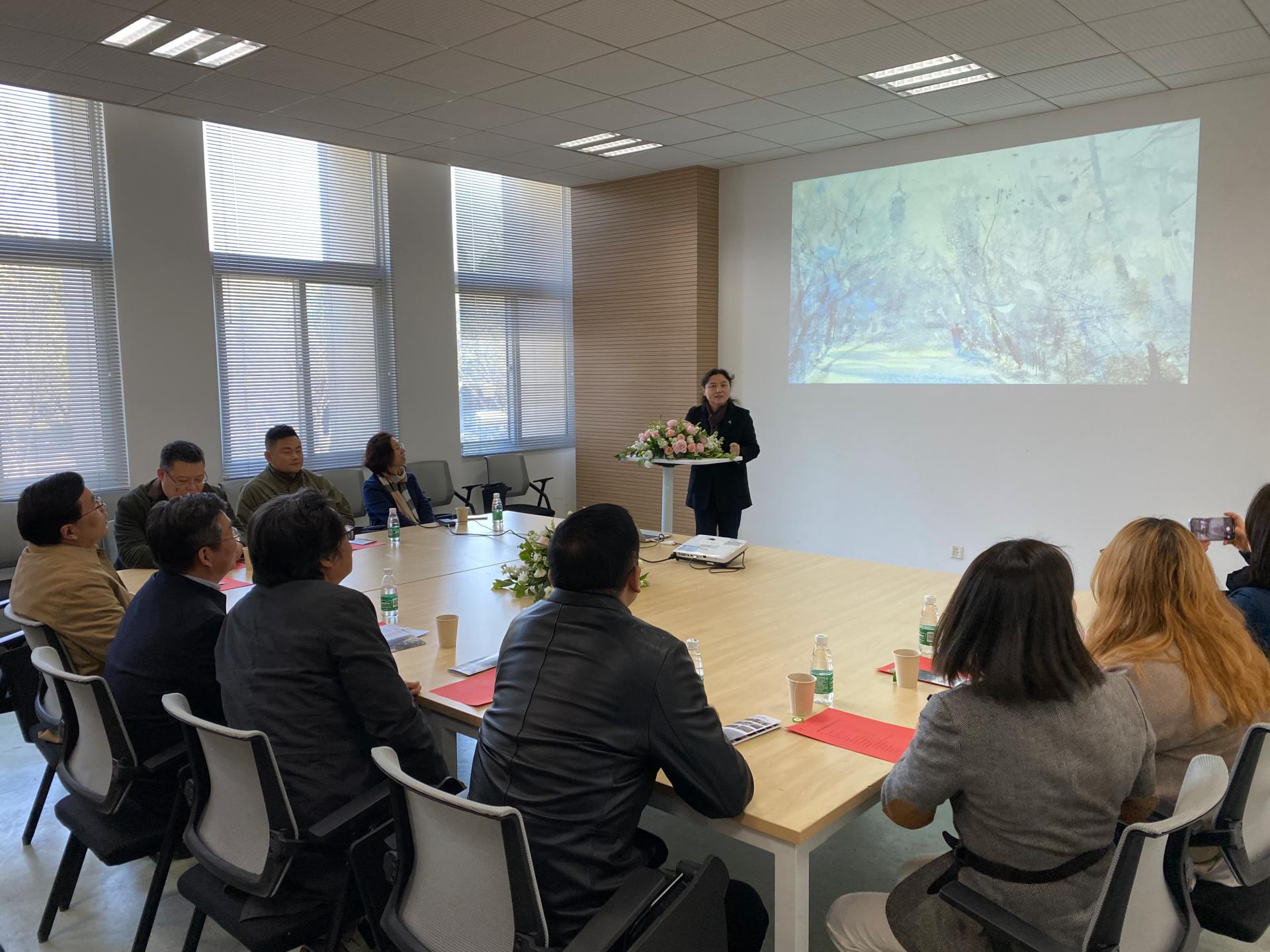郭华瑜经理致开幕词,介绍了傅凯老师的简历以及艺术上的成就。傅凯教授介绍本次画展内容,希望通过本次画展能培养员工深厚艺术素养,增添校园艺术氛围。 随后傅凯老师向公司捐赠了两幅水彩作品。