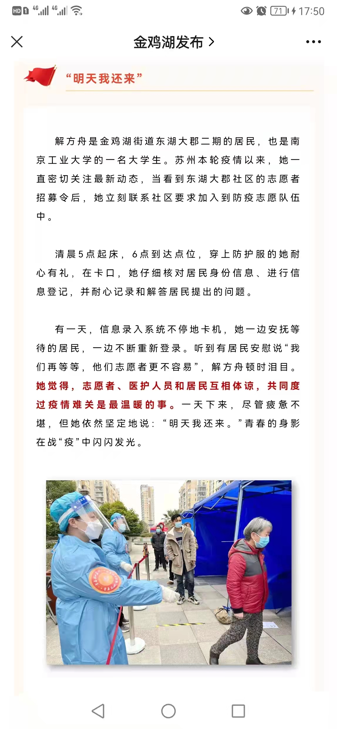 继2月10日苏州市发现1例新冠肺炎确诊病例后,新增病例陆续出现,突如其来的疫情打乱了苏州原本的生活节奏,tyc122cc太阳成集团多名员工秉持“奉献、友爱、互助、进步”的志愿服务精神,勇于担当,守护家园,用实际行动为抗击疫情注入青春力量。