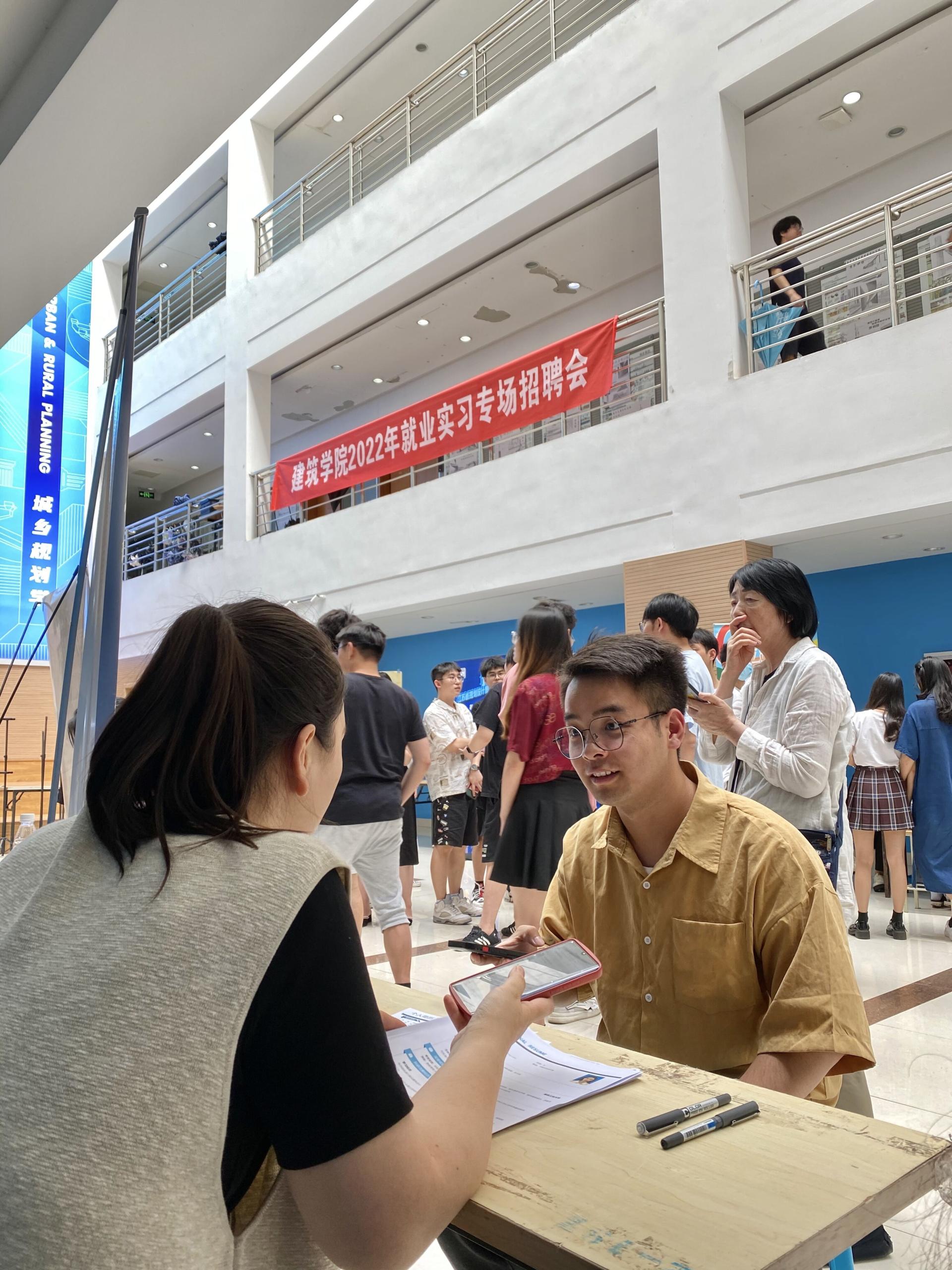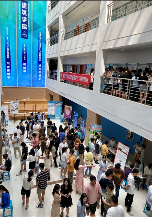本次招聘会邀请到江苏省规划设计集团有限公司、南京长江都市建筑设计股份有限公司、中衡设计集团股份有限公司、启迪设计集团股份有限公司等以江苏地区为主的15家优质用人单位来校招聘,提供招聘岗位300余个,招聘岗位覆盖建筑学、城乡规划、风景园林全部3个专业。招聘会现场,同学们积极投递简历,主动与用人单位进行沟通交流,了解企业相关情况、岗位用人条件等。在交谈中,同学们还就目前考研趋势、就业前景等问题请教招聘单位,现场互动频繁、气氛热烈。