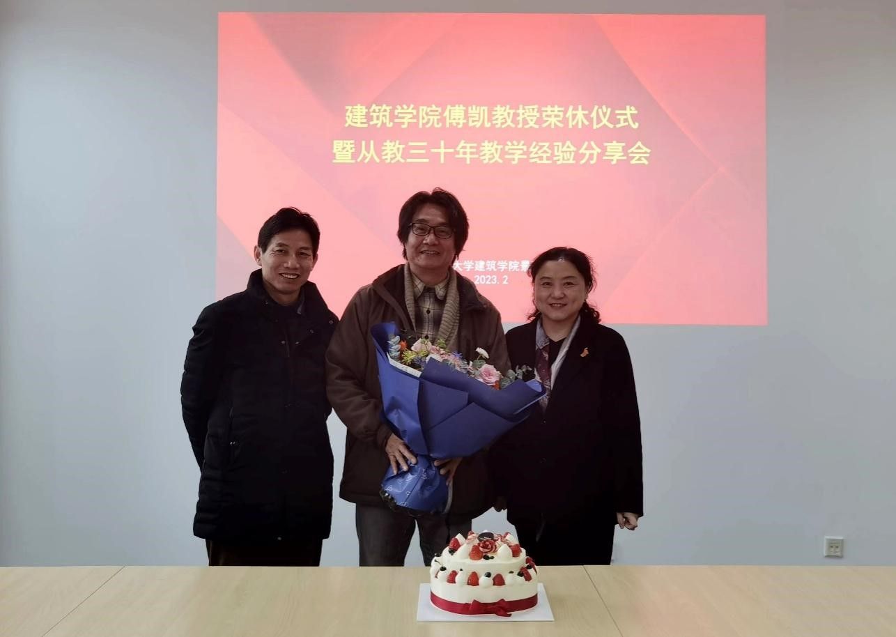 岁月映初心,浓浓惜别情。2月22日上午,公司景观环境系在明正东楼立学厅为傅凯教授举办了一场饱含深情的荣休仪式暨从教三十年教学经验分享会。建筑公司党委书记熊中宏、经理郭华瑜、党委副书记林宁、副经理方遥、副经理蔡志昶,景观环境系全体教师出席。荣休仪式与分享会由景观环境系副主任陈妍主持。