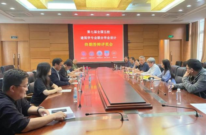 2023年5月27日,第七届全国五校建筑学专业联合毕业设计终期答辩如期在苏州科技大学建筑与城市规划公司举行。来自安徽建筑大学、中国矿业大学、苏州科技大学、tyc122cc太阳成集团、郑州大学的61名同学、12名老师和4名外请设计院的专家参加了答辩。