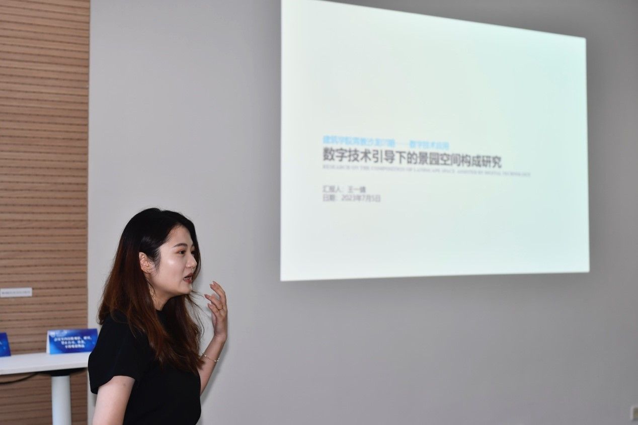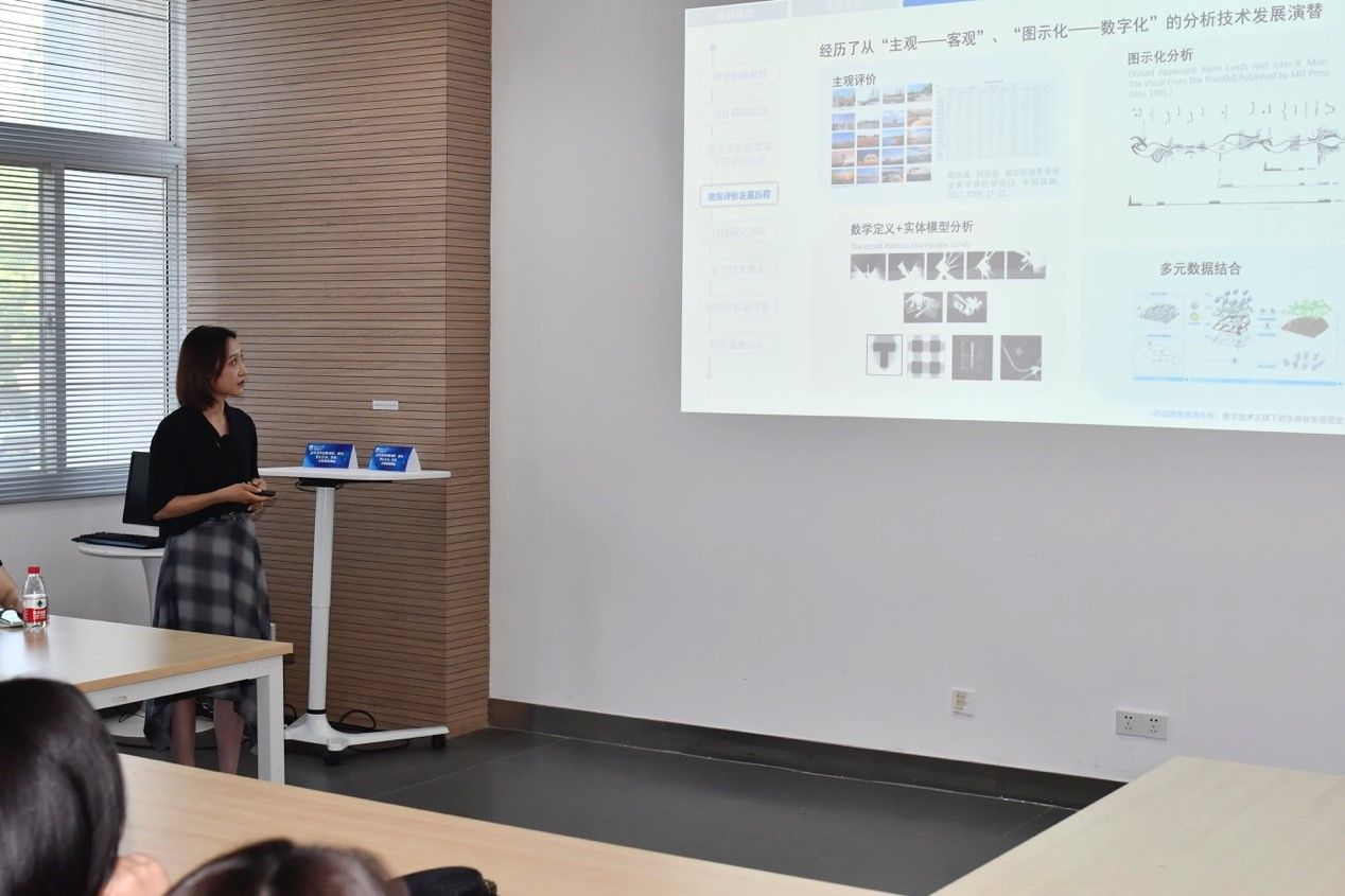 本次沙龙包括报告、提问与自由交流三个环节。首先,张冠亭老师做了题为《数字技术支撑下的多维视觉景观定量评价方法》的报告,张老师从市域、片区、节点三个维度构建了城市视觉景观的定量评价体系,并详细解析该体系在三个尺度设计实践中的应用路径。王一婧老师的报告题目为《数字技术引导下的景园空间构成研究》,从模型建构—定量描述—定量分析—设计实践四个步骤环环相扣,描绘了点云数据用于景园空间研究与微尺度景观设计的过程与方法。在座老师针对报告中涉及的研究方法与技术细节提问,两位老师详细解答。在自由交流环节,大家围绕数字技术应用于设计教学面临的挑战与问题展开了讨论,并结合自身研究思考数字技术的潜在应用方向,现场气氛热烈。