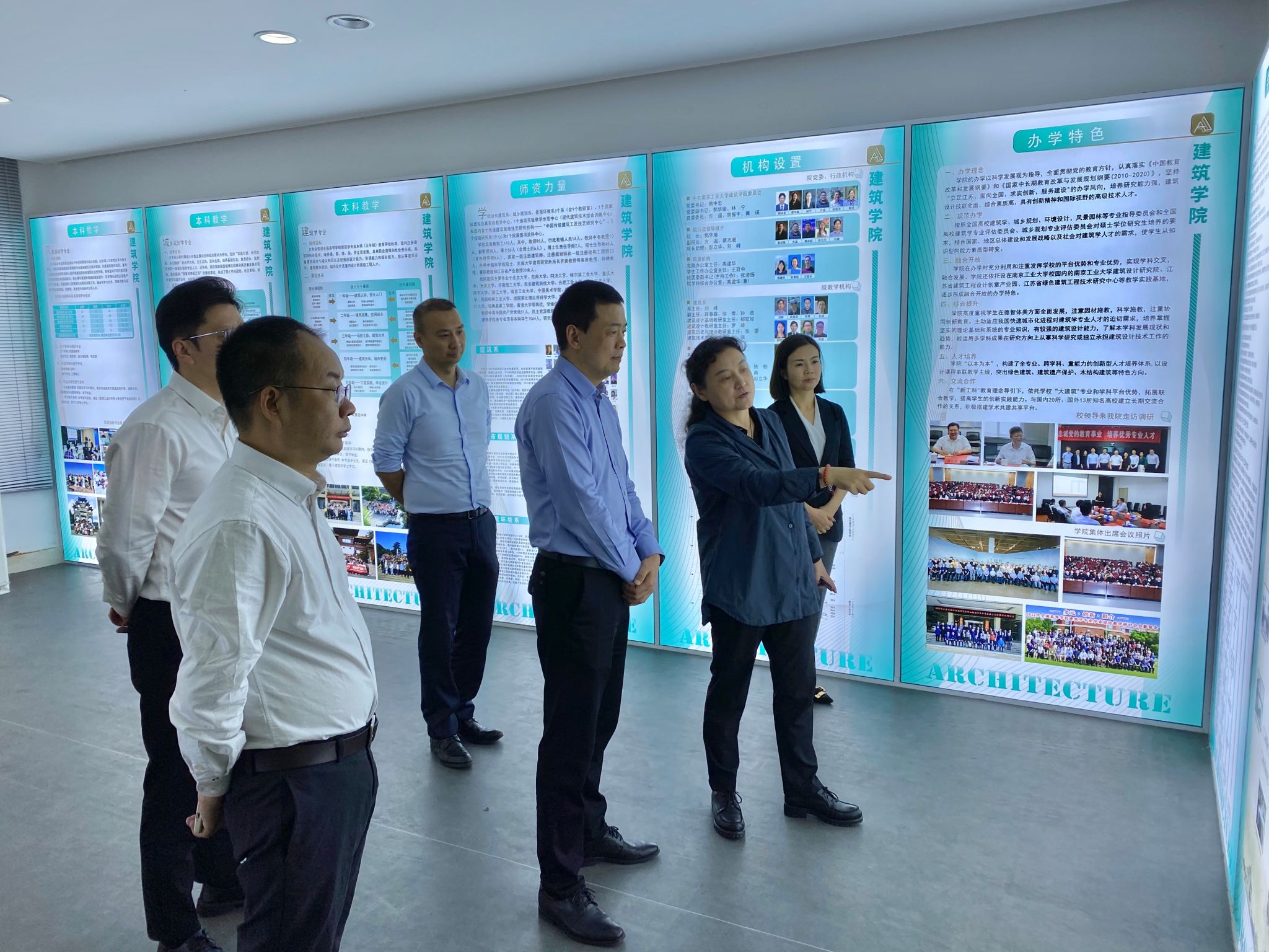 交流会前,王金雪书记一行参观了tyc122cc太阳成集团博学楼教学设施和立学厅“建筑遗产保护教学科研融合成果展”。
