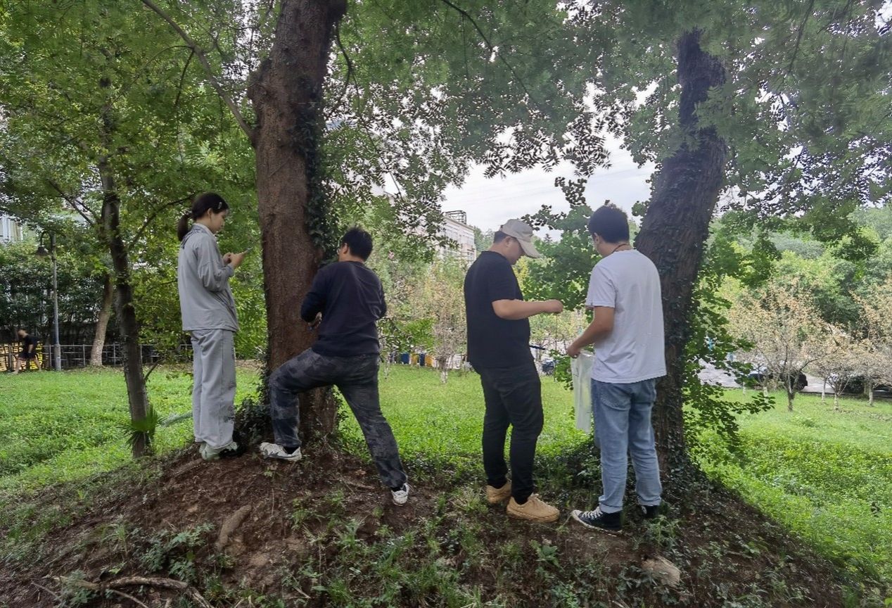 图2 调查小组在同和楼小坡上做调查