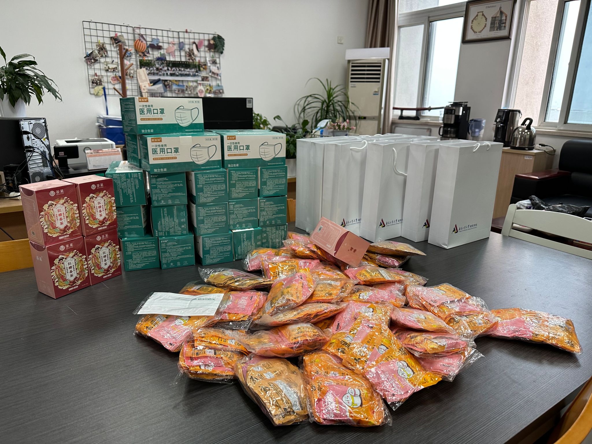 林宁老师代表公司向考研同学表达了诚挚祝愿,鼓励大家保持学习状态和良好心态,沉着冷静,坚持到底,并提醒同学们近期天气寒冷,注意防寒保暖,劳逸结合,用最好的状态迎接考试。学办老师为考研同学送上口罩、暖手宝、姜茶等防寒防护物资。