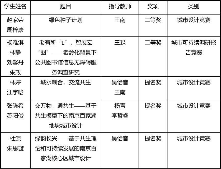 公司获得城市设计竞赛二等奖1项,城市可持续调研报告竞赛二等奖1项,同时还获得提名奖3项。具体获奖作品如下: