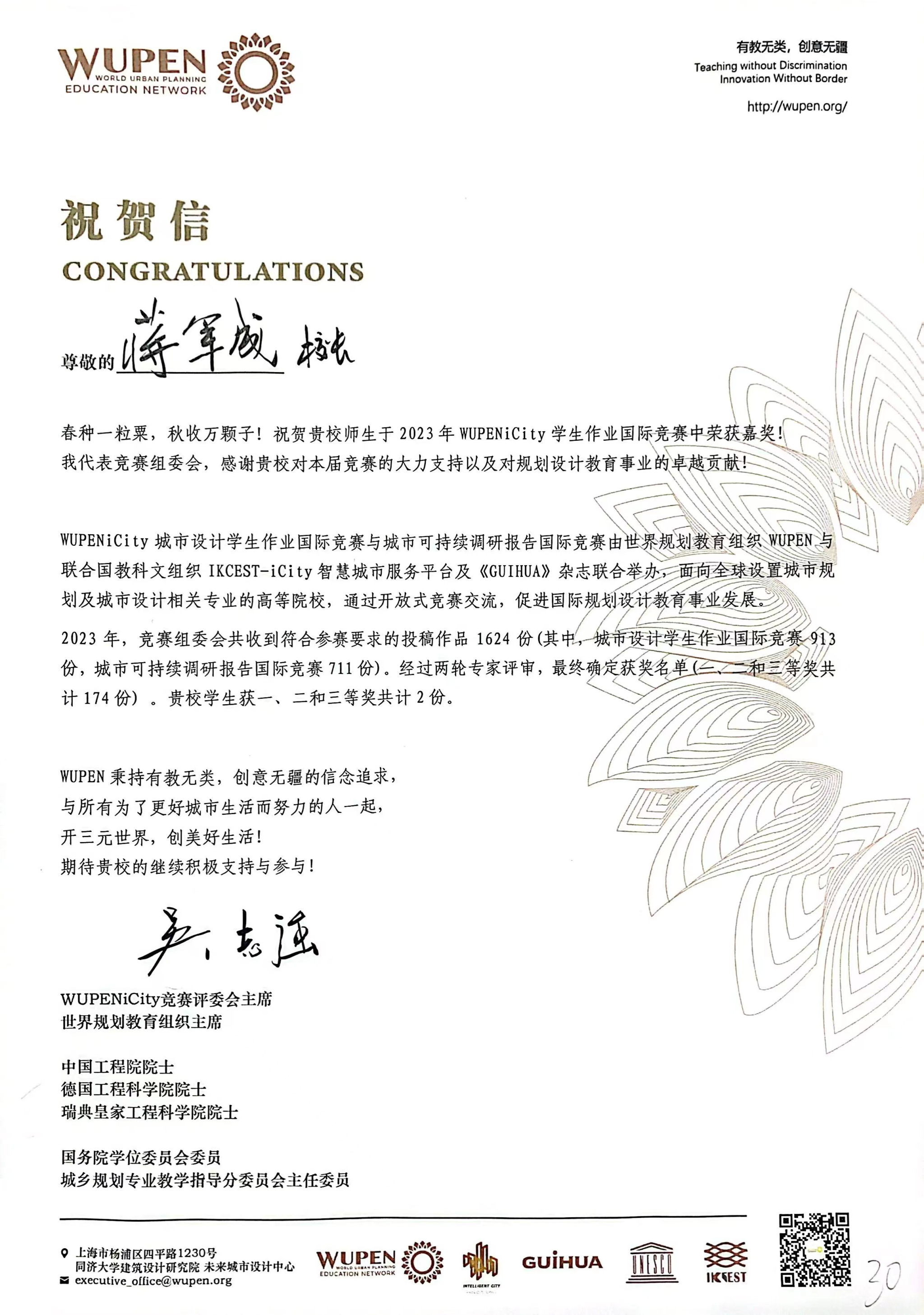WUPENiCity城市设计及可持续调研报告竞赛由世界规划教育组织(World Urban Planning Education Network)、联合国教科文组织iCity网站(UNESCO-iCity Website)、Guihua Journal杂志联合举办。目前是国内城乡规划专业级别最高、最权威的竞赛之一。