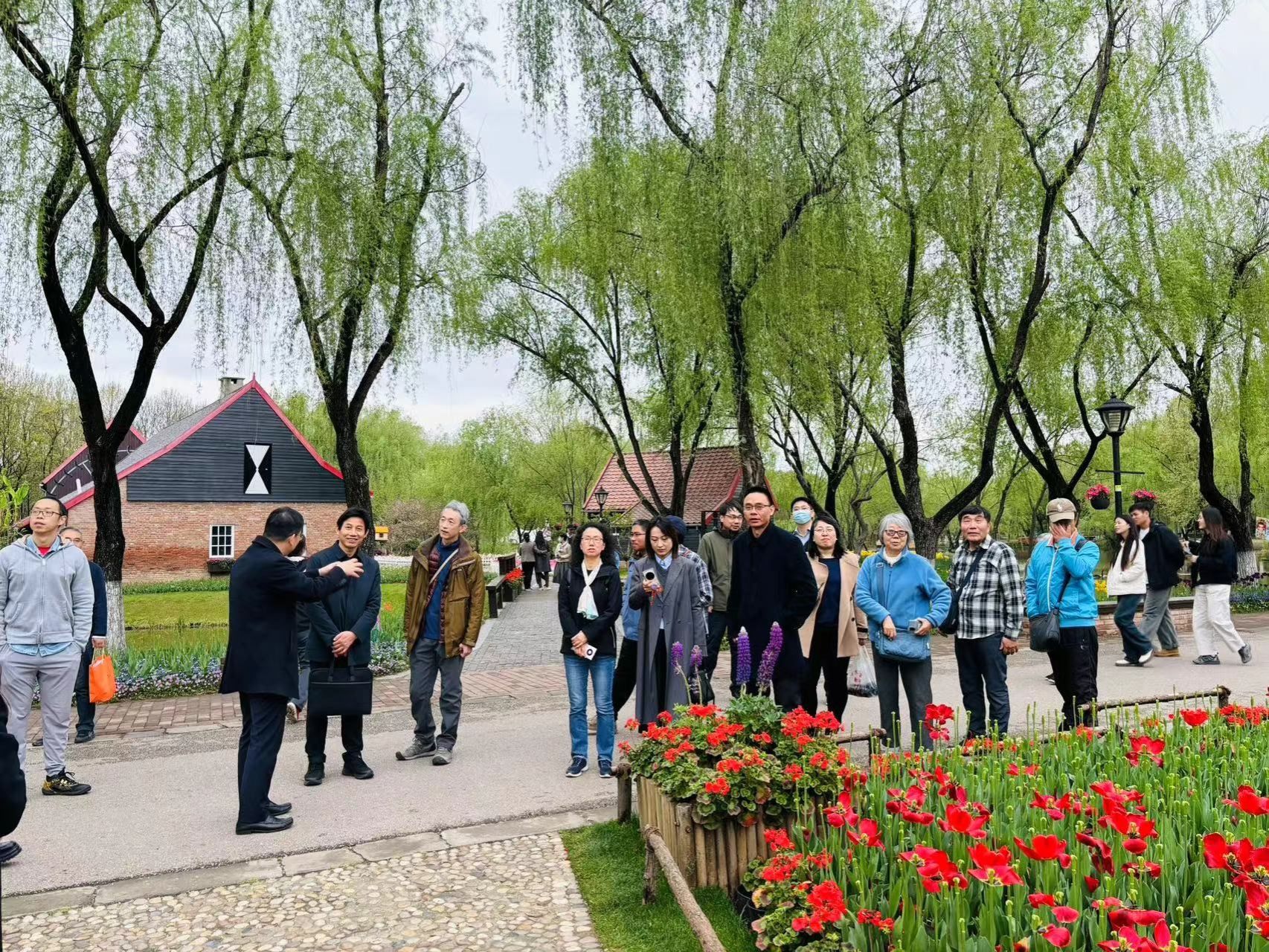 南京滨江公园濒临长江,作为南京生态园林城市的重要组成部分,是南京城市绿色客厅、山水城林之窗的代表。本次参观以绿博园荷兰友谊园为起点,向南途径左岸花海、青年文化公园及鱼嘴公园等滨江特色景点。一路上老师们欣赏了具有荷兰民族风情的建筑、品种色彩各异的郁金香花海、蜿蜒曲折的湿地栈道及水天一色的壮阔江景。张总为大家详细介绍各个景点的建设缘起、设计理念及日常运营管理措施,并一一解答老师们提出的问题。在青年文化公园内部,老师们参观了南京滨江规划建设展示中心和奥林匹克博物馆,了解南京“一江两岸”的过去、现在与未来,深刻领悟习总书记关于长江经济带高质量发展的战略思想。