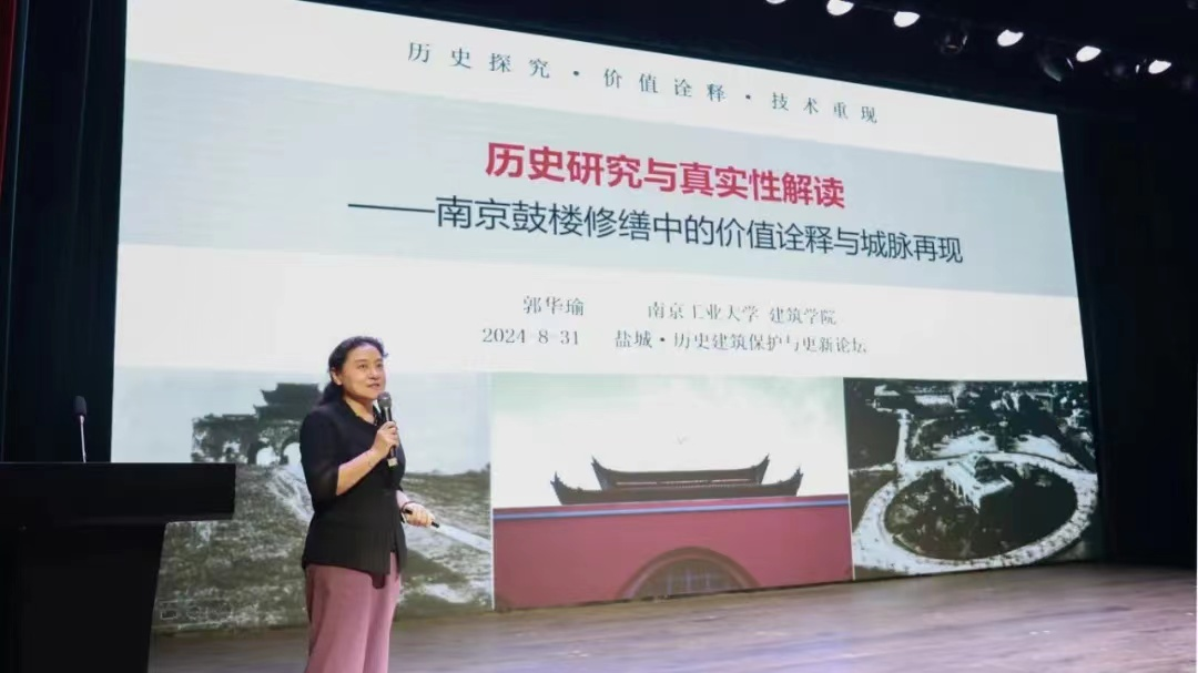 郭华瑜教授当选首届江苏省历史文化保护传承专业委员会副主任委员,并于大会作主旨学术报告 《历史研究与真实性解读——南京鼓楼修缮中的价值诠释与城脉再现》,详细介绍了从五个历史节点反映的历史信息入手,围绕着三大价值所进行的历史建筑修缮和保护工作,深入彰显了南京鼓楼浓厚的历史意义和独特的文化价值。