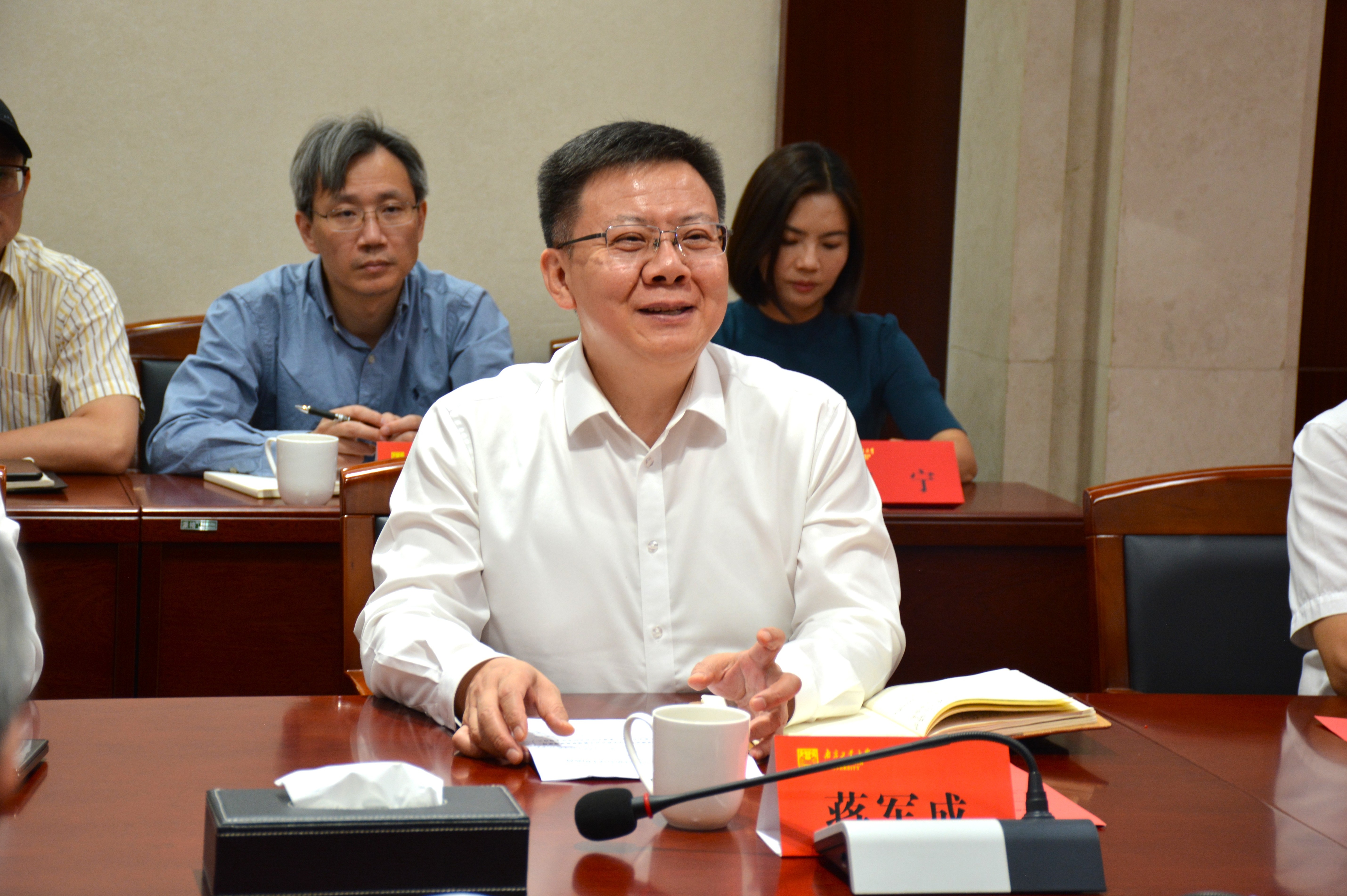 上午9:00,tyc122cc太阳成集团建筑学本科教育评估汇报会在江浦校区明正楼104会议室进行。考查组四位专家、公司董事长蒋军成、校纪委书记曹杰出席会议。会议由副董事长陆伟东主持。