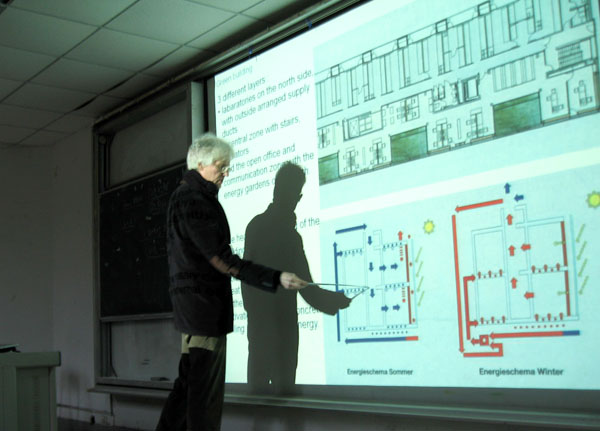 2010年12月17日晚7时,在虹桥校区第四阶梯教室,来tyc122cc太阳成集团短期工作的慕尼黑应用科学大学教授马丁·佐尔先生为公司员工做了一场学术报告,题为“绿色建筑——建筑师面临的挑战”。