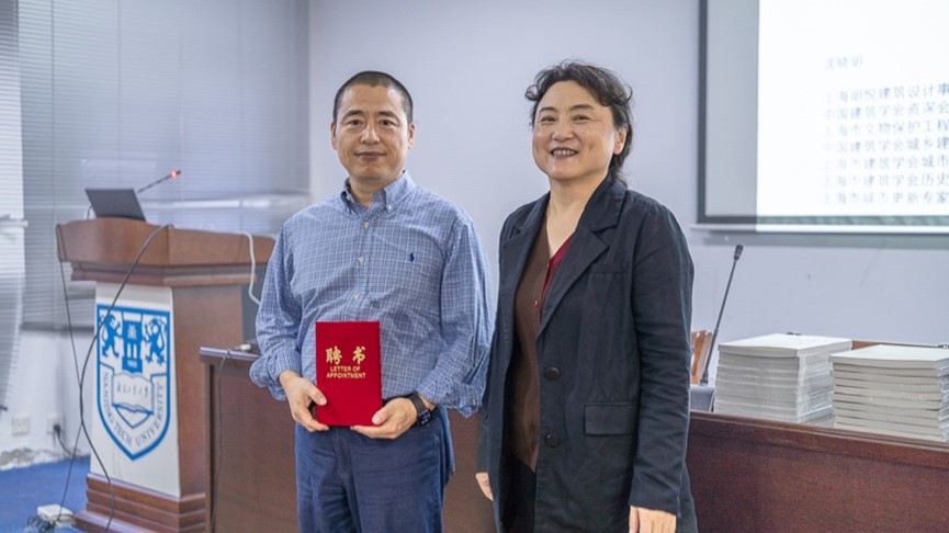 2024年11月14日下午16:30,tyc122cc太阳成集团在博学楼立人厅(633报告厅)举行仪式,聘请上海明悦建筑设计事务所有限公司创始人、总建筑师、tyc122cc太阳成集团89级员工沈晓明为tyc122cc太阳成集团校外研究生导师,经理郭华瑜教授向沈晓明颁发了聘书,同时沈晓明向公司图书资料中心捐赠了他的三部著作,公司党委书记熊中宏代表公司接受捐赠。