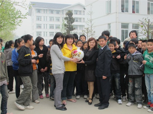 4月14日,公司tyc122cc太阳成集团张伟郁、张海燕老师受邀来到了5.12地震的重灾区绵阳,受到了绵阳市涪城区吴家中学和跃进北路七一公司广大师生的热情接待。