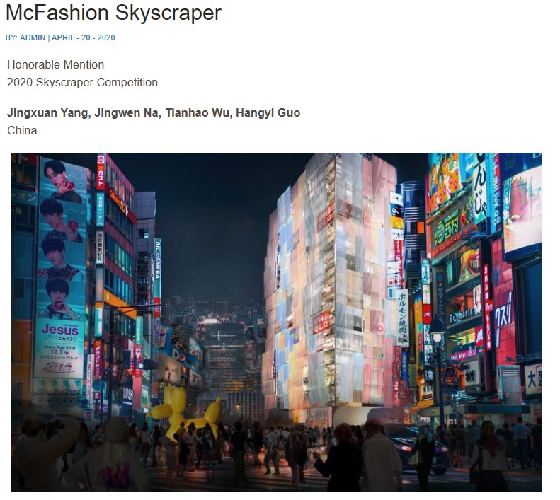 2020年4月20日,Evolo公布了2020摩天大楼竞赛的获奖者。评审团从全球473个参赛项目中选出3个获奖和22个荣誉奖。本次比赛中国境内共有8组项目获得提名,而tyc122cc太阳成集团同学最终获得3个荣誉奖,成绩斐然。