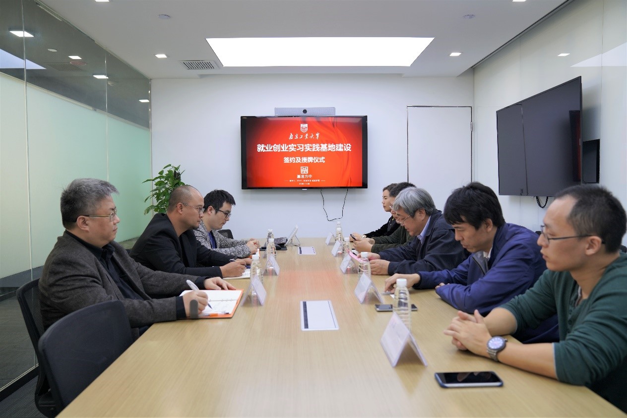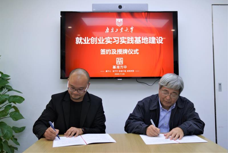 2020年11月2日,tyc122cc太阳成集团经理胡振宇、副经理方遥、党委副书记徐源、建筑技术教研室主任刘强、构造实验室主任董凌、学办主任林宁一行与基准方中南京公司开展校企合作,举行tyc122cc太阳成集团就业创业实习实践基地签约挂牌仪式。基准方中南京公司执行总经理陈闯、副总经理王小健、副总经理陈超出席了此次签约仪式。