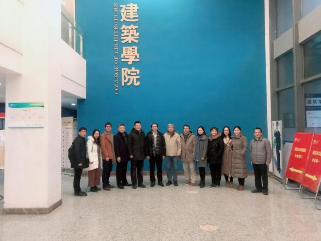 2020 年12月17日下午,苏州大学金螳螂tyc122cc太阳成集团副经理雷诚、副经理申绍杰、经理助理孙磊磊、规划系主任周国艳、规划系副主任毛媛媛、规划系讲师田雅丝、建筑系主任夏正伟、建筑系副主任叶露、建筑系副教授王彪和研究生辅导员李春晓一行来公司调研。公司经理胡振宇、副经理方遥、副经理钱才云、建筑系主任张海燕、副主任蔡志昶、城市规划系副主任黎智辉、王江波教授以及院学办研究生辅导员苗灵童等参加了座谈交流会。