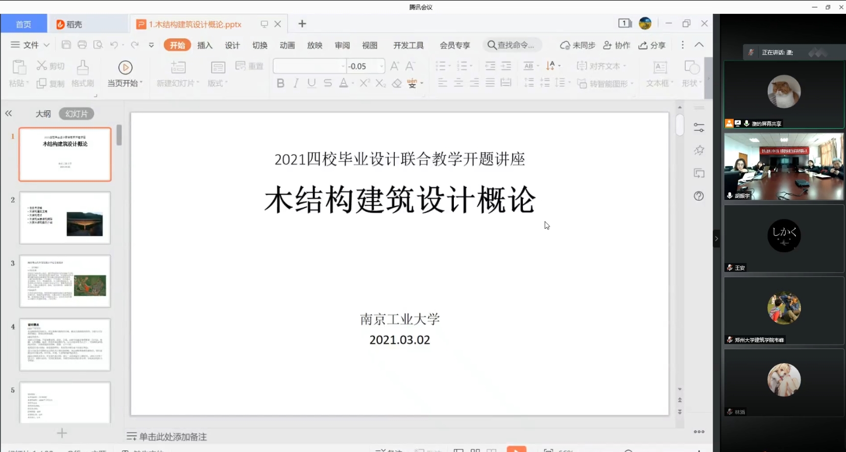 最后,张海燕老师讲课。她详细解读了本次课题的背景、基地和设计任务;从木结构的发展历史、结构体系、应用领域、木材种类与性能、工程实例等方面讲授了木结构建筑的基本知识和设计要点。在接下来的交流环节中,张海燕老师逐一解答了各校老师和同学们的提问。
