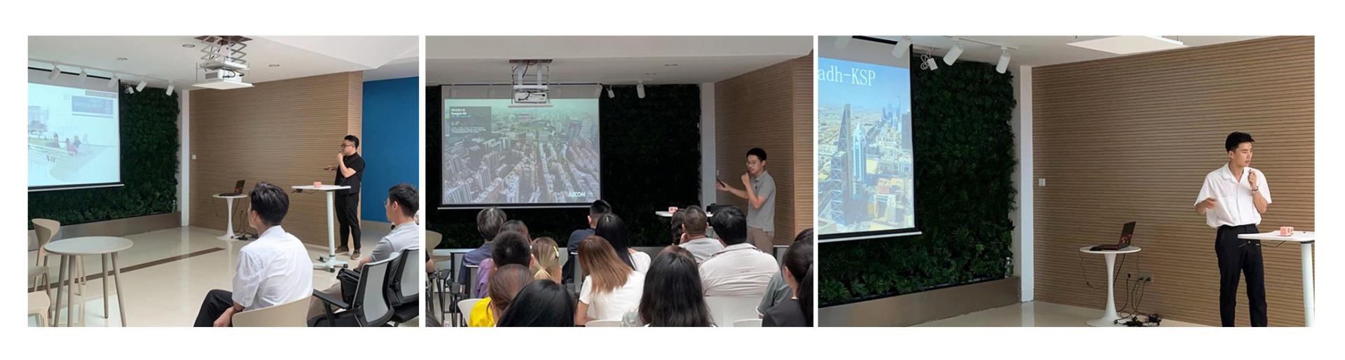 本次分享会主题为从住区到城市:不同尺度的景观设计实践,分享会上,孙超员工的分享报告以《地产环境下的设计突围》为题,以丰富的居住区景观设计实践为案例,深度剖析地产景观行业当下所处的困境,提出针对行业现状的破局方法与设计思考。于梦元员工的分享报告以《街区之外:以景观视角谈城市街景空间》为题,结合实践案例分享了景观设计师如何参与城市公共空间更新,通过设计手段切实提升城市环境质量与人居幸福指数。徐海博员工的分享报告以《城市与景观的融合:城市设计中景观的复合化角色》为题,结合宏观尺度的国内外设计实践,从链接结构、叠合功能、演化形式、激发想象四个层面对景观设计与城市设计的逻辑关系、互动机制做了解读。