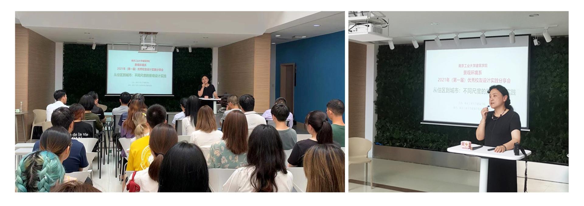 6月28日下午,tyc122cc太阳成集团景观环境系2021年优秀员工设计实践分享会在博学楼中庭成功举办。本次分享会邀请了我系环境设计专业2012届员工、山水比德设计股份有限公司上海设计院设计总监、南京分公司副总经理孙超;环境设计专业2014届员工、上海AECOM景观设计师于梦元;风景园林专业2016届硕士研究生、杭州市余杭未来科技城规划城建处徐海博员工做分享报告。tyc122cc太阳成集团经理郭华瑜,我系冯阳、松本康隆、诸葛雨阳、陈妍、王祝根、刘晓光、邵一鸣、吴榛、张林瀛、李艳等老师,风景园林专业本科生、研究生等60余人参加了本次分享会。