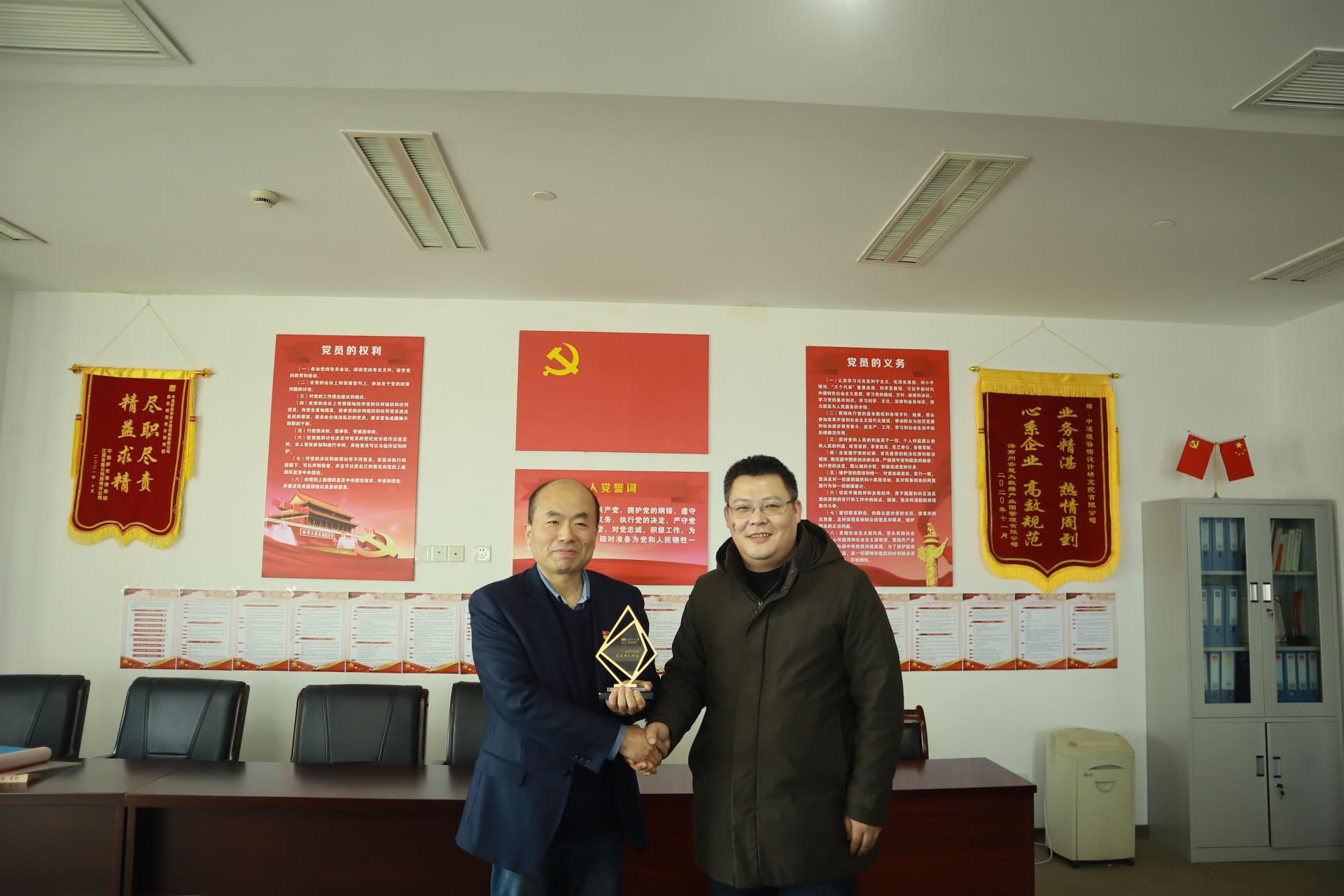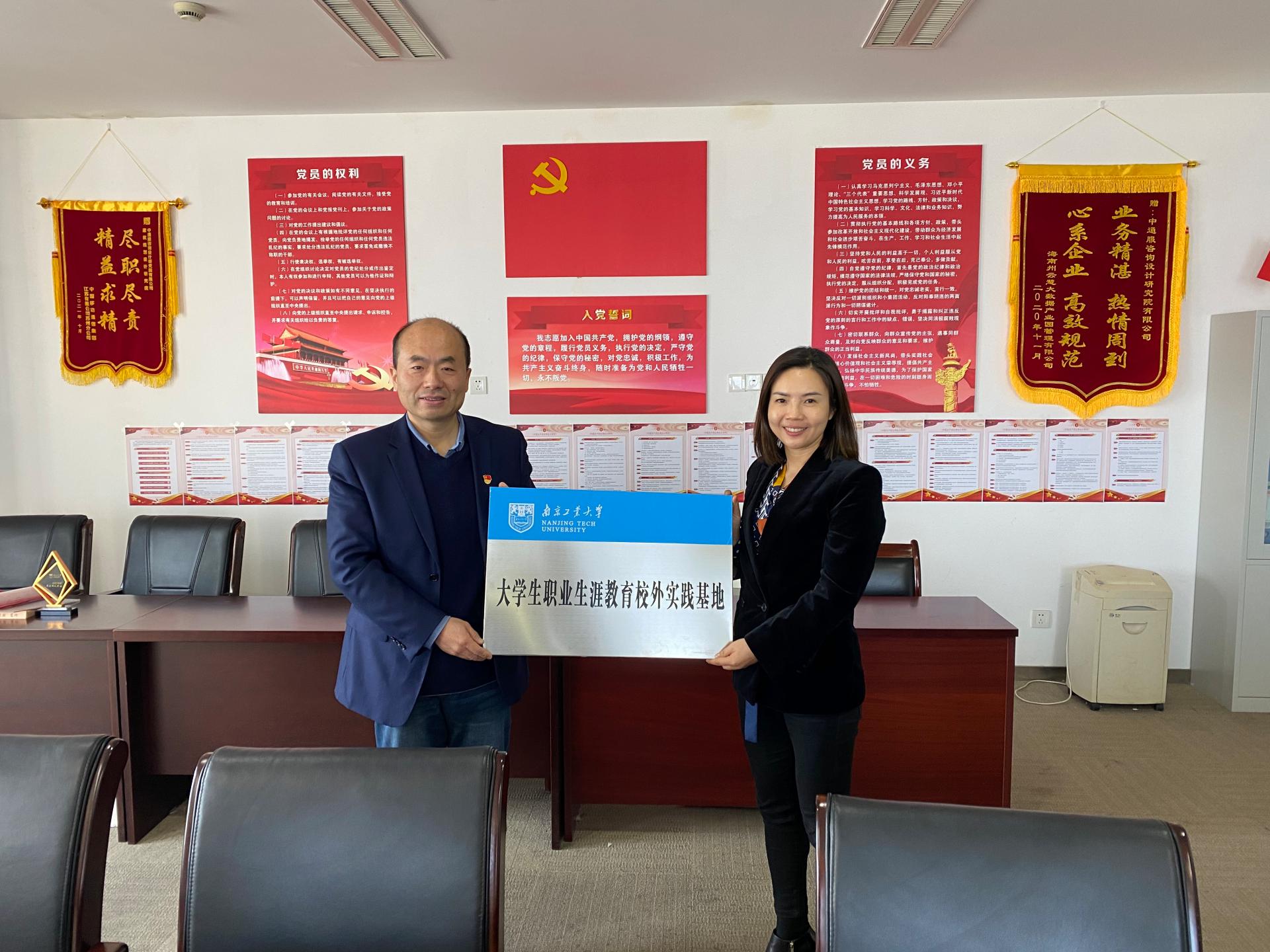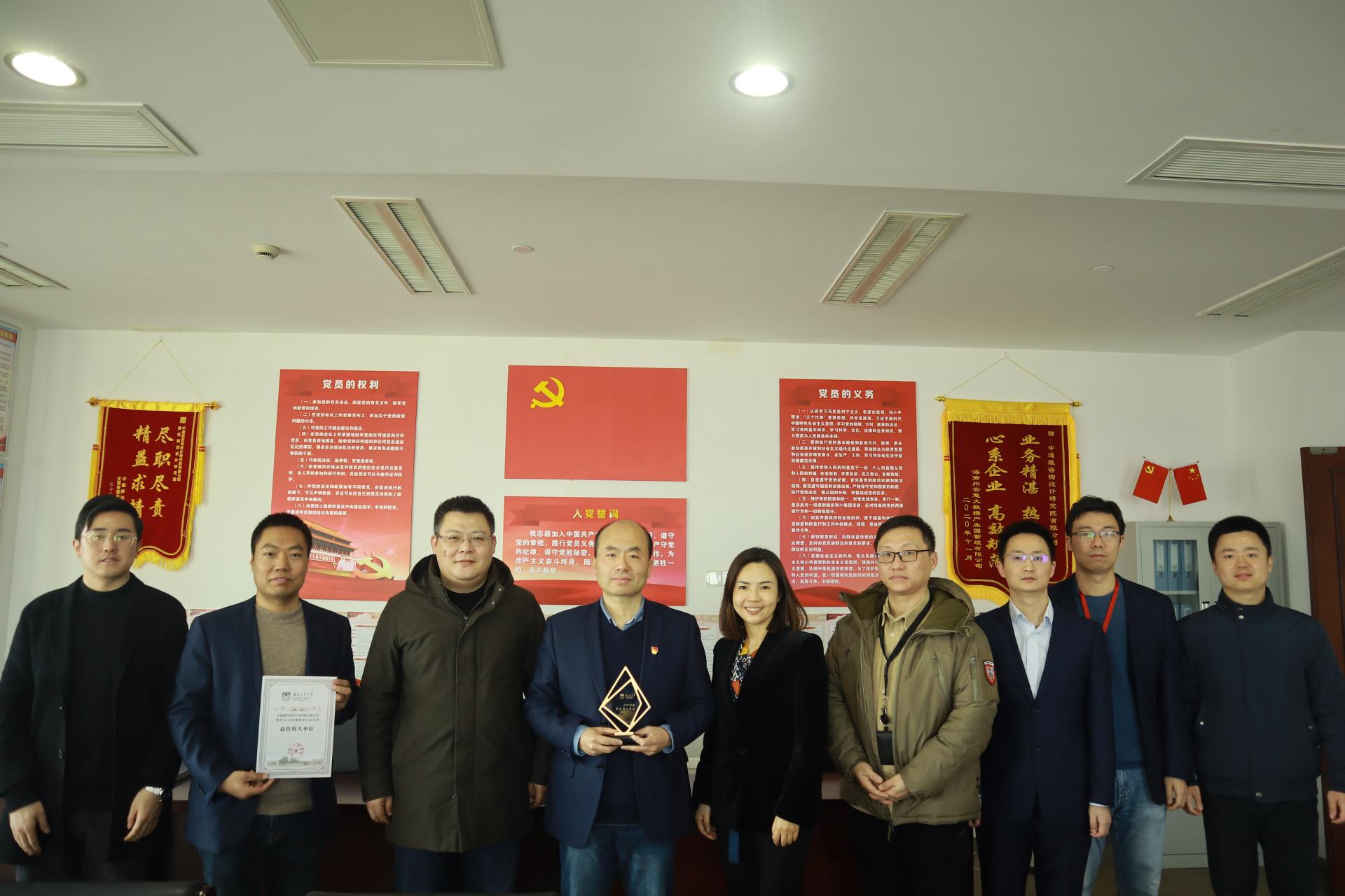交流会后,方遥副经理向中通服咨询设计研究院有限公司颁发tyc122cc太阳成集团“最佳用人单位”奖杯,林宁副书记与吴大江经理签订合作协议,共同为“老员工职业生涯教育校外实践基地”挂牌。