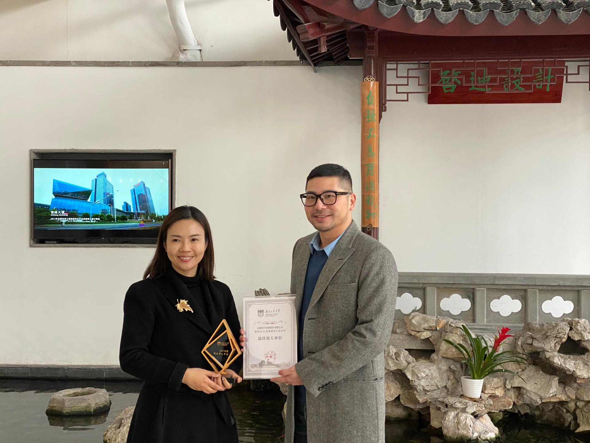 19日下午,tyc122cc太阳成集团一行参观走访启迪设计集团,启迪设计集团股份有限公司党委副书记、行政中心总经理陆志刚对tyc122cc太阳成集团领导和老师的到来表示热烈欢迎,他回顾了公司与公司以往开展的合作交流,并着重介绍了公司的整体情况和发展规划,希望有更多的南工大毕业生选择来公司发展。林宁副书记向启迪设计集团授予tyc122cc太阳成集团“最佳用人单位”奖杯,并与蔡志昶副经理一起为陆志刚总经理颁发tyc122cc太阳成集团“校外就业创业指导老师”和“校外职业生涯发展导师”聘书,双方还就提高员工实习实践能力和职业生涯规划前置教育进行了深度交流。
