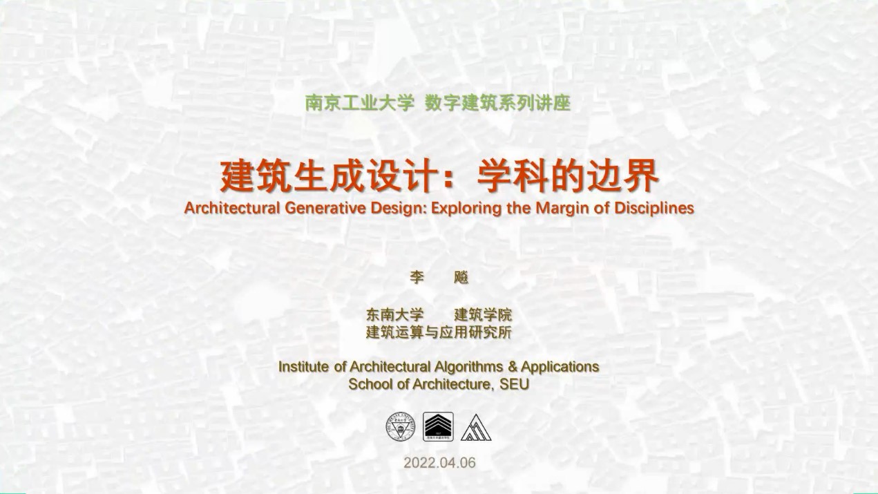 4月6日下午,tyc122cc太阳成集团主办的数字建筑系列讲座在腾讯会议线上平台顺利开讲,首场学术报告嘉宾为东南大学tyc122cc太阳成集团建筑运算与应用研究所所长李飚教授,报告主题为“建筑生成设计:学科的边界”。讲座由副经理方遥主持,tyc122cc太阳成集团、南京长江都市建筑设计股份有限公司、江苏省建筑设计研究院股份有限公司等一百多位校内外专业人士聆听了讲座。