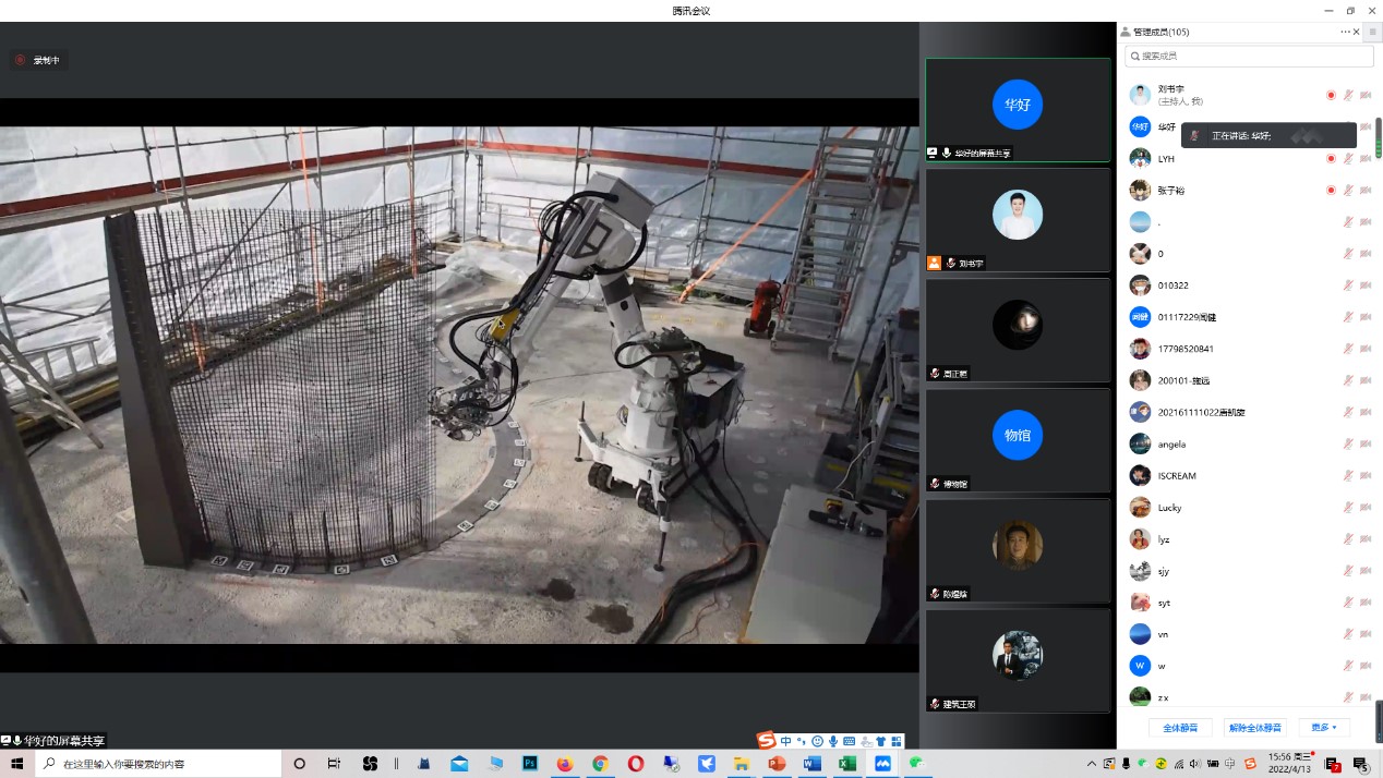 4月13日下午,tyc122cc太阳成集团主办的数字建筑系列讲座第二讲在腾讯会议平台顺利召开。东南大学tyc122cc太阳成集团建筑运算与应用研究所华好副教授为公司师生带来了“数字建造与材料运算”主题报告。本次讲座由经理郭华瑜主持,公司一百余名师生聆听了讲座。