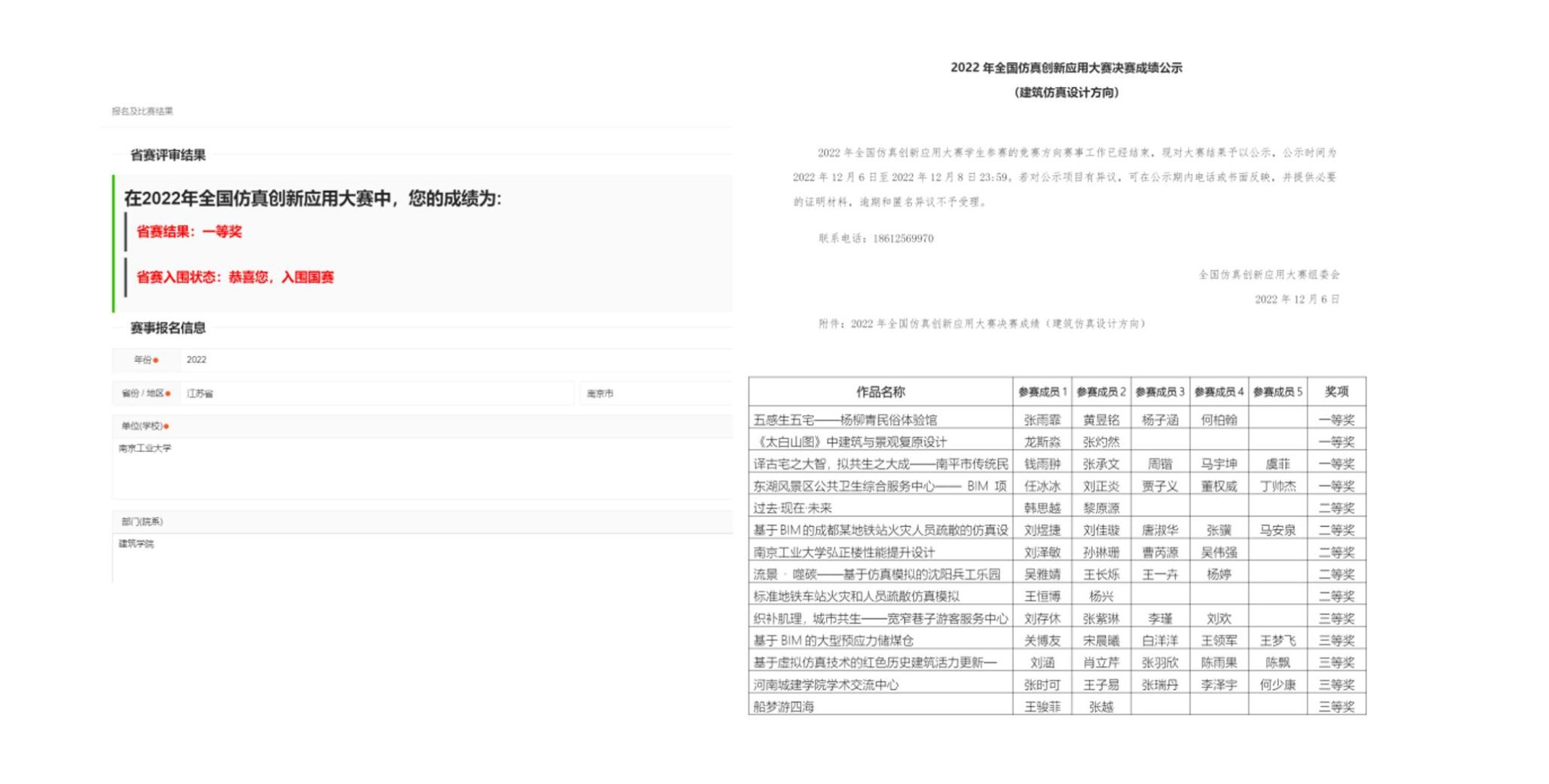 日前,2022年全国仿真创新应用大赛仿真创新设计赛道——建筑仿真设计方向全国总决赛成绩揭晓,公司与土木公司联合团队喜获江苏省省赛一等奖并国赛二等奖。