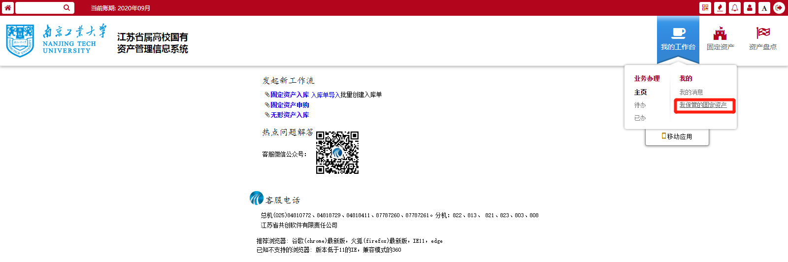 登录资产管理系统:http://zcgl.jse.edu.cn/homeJSHSC.jsf